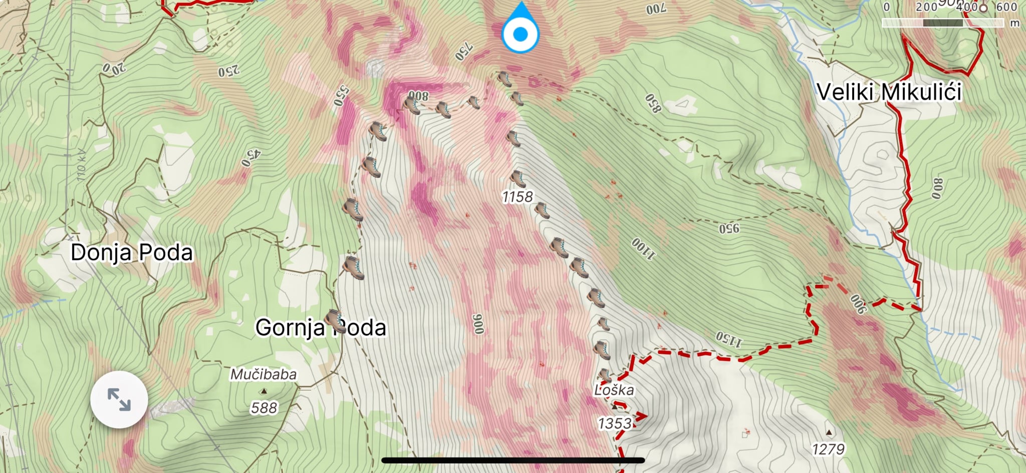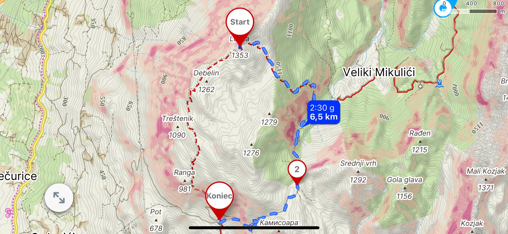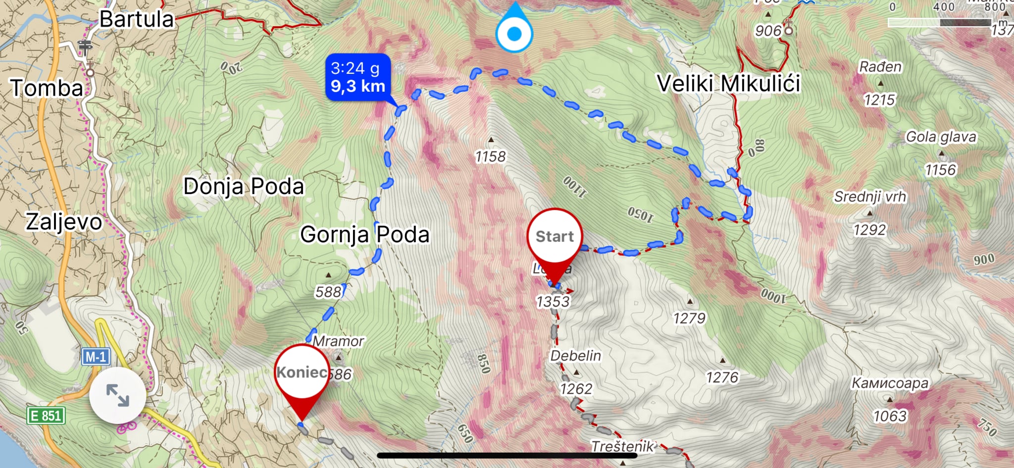 Ze szczytu jest kilka alternatywnych zejść i można wrócić do Lunje tą samą drogą która prowadziła na szczyt. Jednak każdy kto lubi dłuższe wędrówki może sobie zaplanować dłuższy powrót . Wedle mojej opinii najlepszy jest powrót granią na północ i zejście do „Skały od Pajki”. Szlak przez grań jest oznaczony częściowo więc idziecie troszkę w ciemno. Ważne jest żeby przez pierwszy etap trzymać się samej grani. W 2025 częściowo oznaczyłem zejście. Wtedy wracamy przez Gornja Poda do Dobrej Vody oznaczonym szlakiem który prowadzi od Pajki.