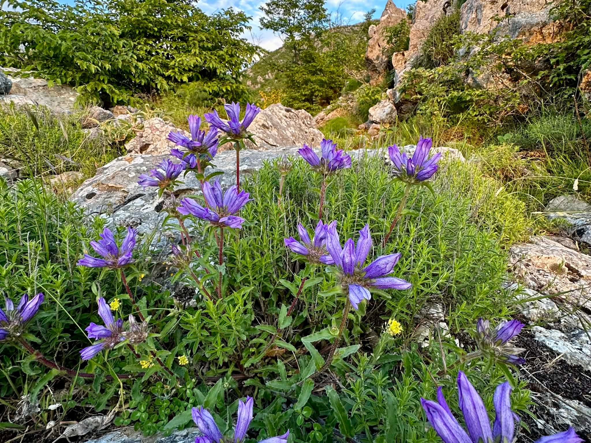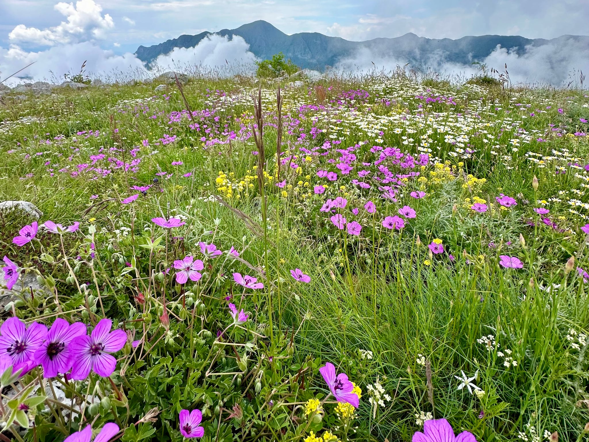 Po około kilometrze wspinaczki przechodzimy przez pozostałości pastwisk które porastają bujne byliny. Przez lata nazwaliśmy te miejsca po swojemu, łąka cząbru, szałwii czy kocanki.