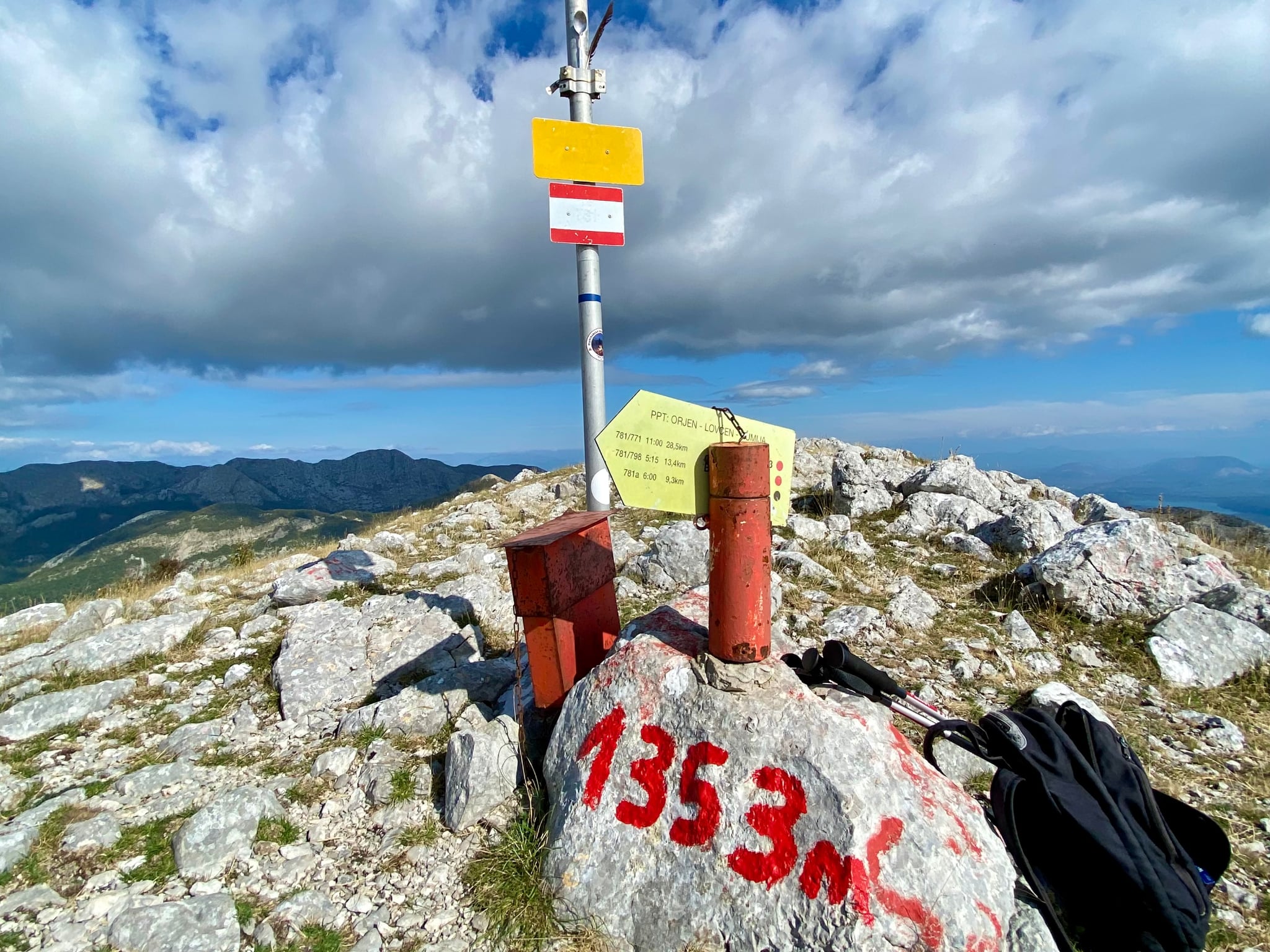 W najdrobniejszym szczegółach możemy zrobić przegląd całego masywu. począwszy od Soziny przez Vrsute, Sutroman, Lonac, Rumije, Brisan i Kozjak aż do Medurjec na którym kończą się nadmorskie Góry Dynarskie. Tak wiec mamy kolejny „dach Czarnogóry” na mapie i niekoniecznie musimy płacić za wejściówkę żeby zobaczyć cały kraj z jednego miejsca . Na szczycie znajduje się kamień z napisem wysokością szczytu 1353 m. oraz drogowskaz z odległościami. Warto wpisać się do pamiątkowego zeszytu który znajdziecie w metalowej tubie.