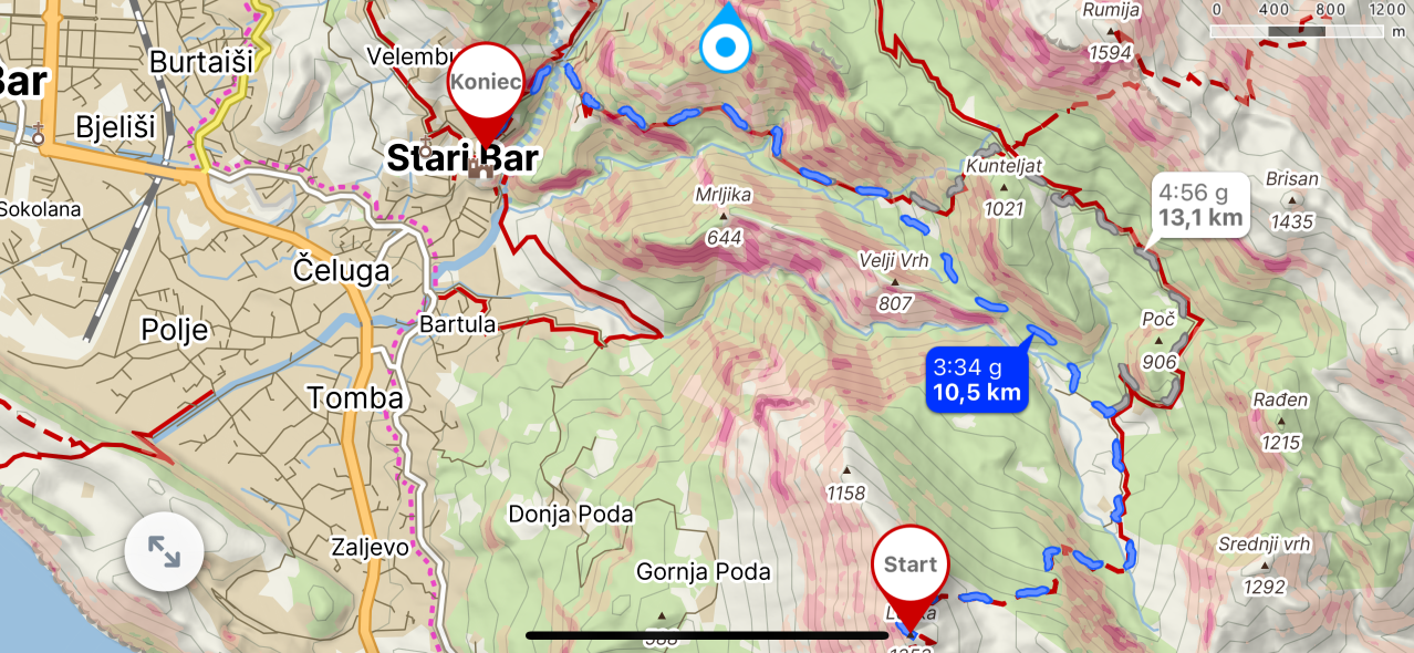 Już po godzinie marszu ukazuje nam się barska riviera i powoli wyłania się Bar. Wyjątkowy widok na całe północne Wybrzeże Czarnogóry pojawia się w jednej chwili.